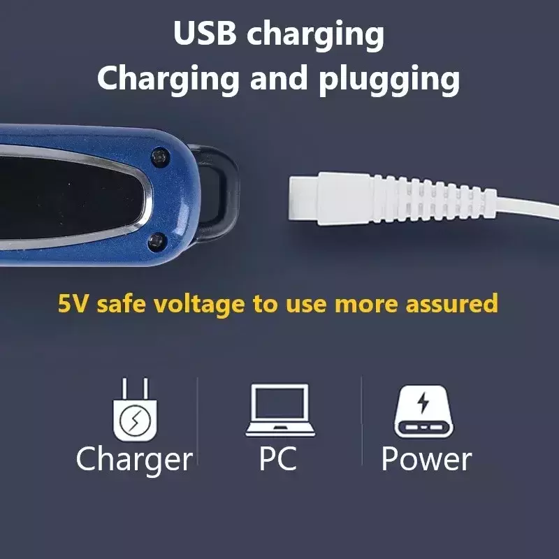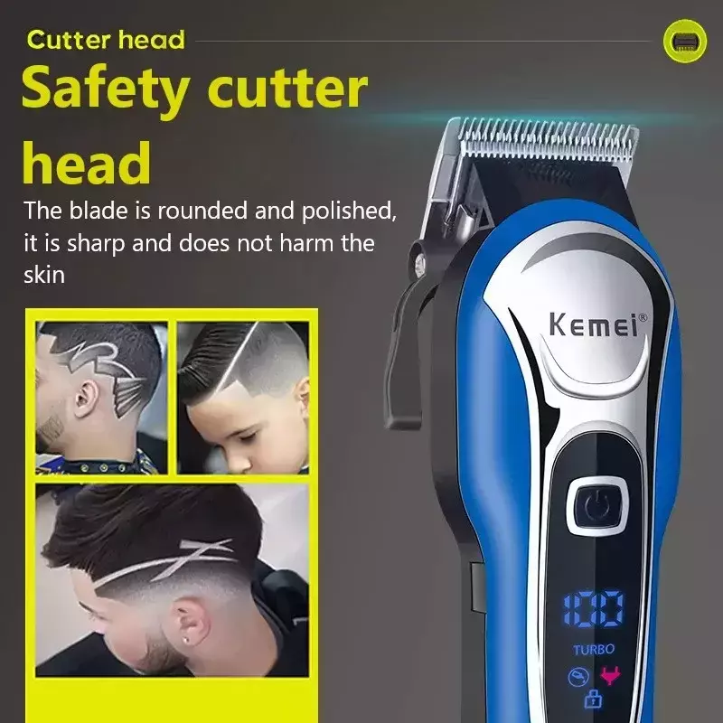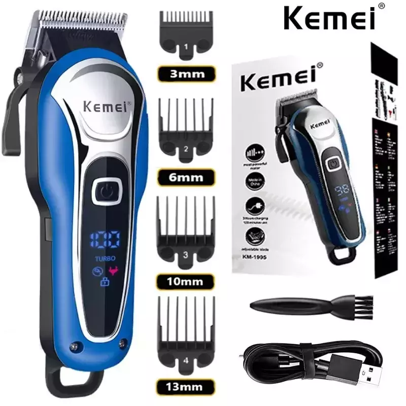 Função: Ajuste elétrico do comprimento, corte de cabelo molhado, corte de cabelo seco, seleção automática de energia baseada na densidade das cerdas, facas de lavagem sob água, carregamento rápido, indicação de carregamento